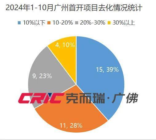 具体到首开项目来看,据克而瑞不完全统计,今年1-10月共有39个全新项目入市,其中绝大多数都是新规后高使用率项目,然而去化率在10%以下的项目有15个,占比接近4成,去化率在10%-20%的项目有11个,占比28%。