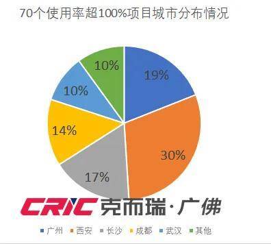 据克而瑞不完全统计,2024全国主要城市超100%实用率的项目达70个,其中西安最多,占比达到30%,广州占比近两成。