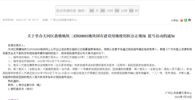 刚刚,通过现场摇号,越秀拿下天河燕塘地块三地块。