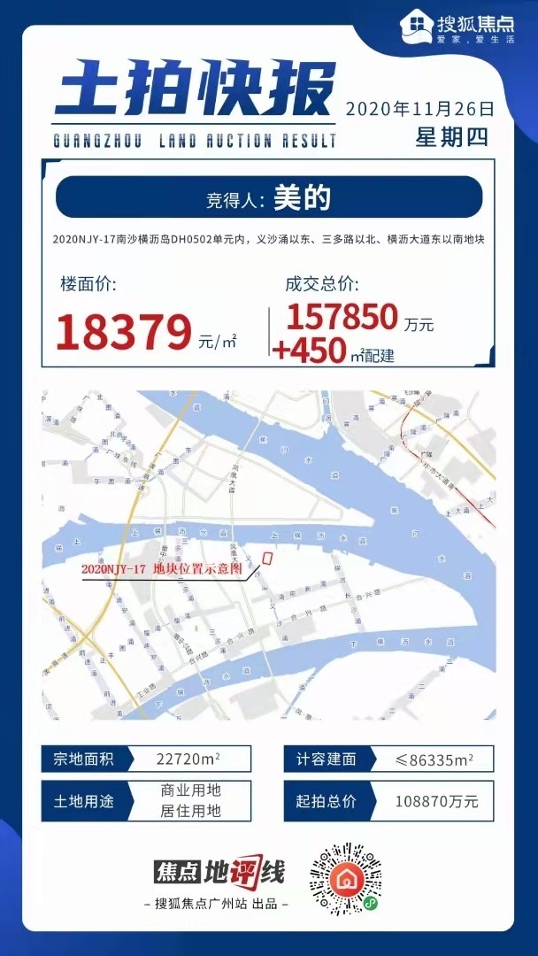 横沥岛地块:美的竞得,成交楼面价18379元/㎡