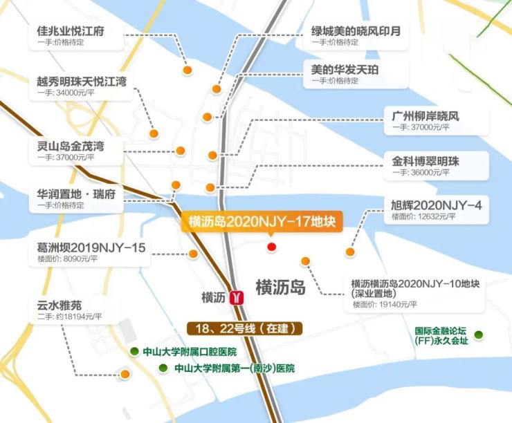 由于整个横沥岛出让宅地不多,目前地块附近没有一手在售住宅项目,不少新盘集中与横沥岛一江之隔的灵山岛尖,如金科·博翠明珠、广州柳岸晓风、华润置地·广州润府等项目。