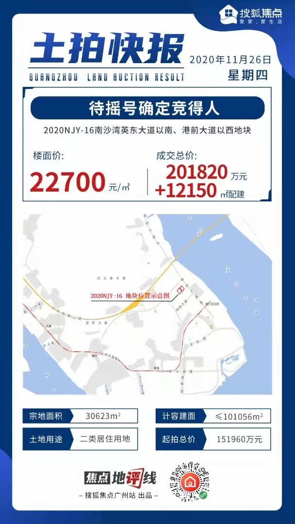 南沙湾地块:等待摇号,成交楼面价22700元/㎡