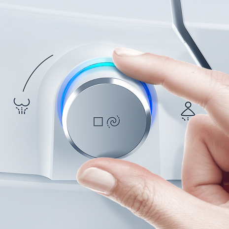 恒洁Qe20继承了恒洁智能类首创的“一键旋钮”设计,告别传统智能马桶复杂的操控面板,化繁为简,一键实现清洗、冲水等功能。轻按一下,启动冲水,顺时针轻轻一旋可启动妇洗功能,逆时针旋转则为启动臀洗功能,实现较大程度的简化操作!同时配合跑马灯灯光效果,十分符合90后对炫酷感和颜值正义的理想追求!