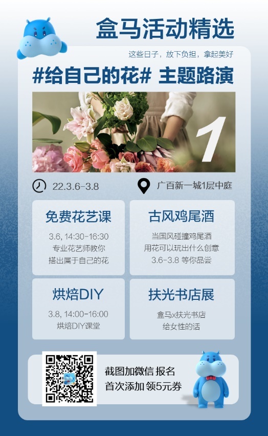 38将至,广佛地区盒马各类活动密集输出,这个周末不知道去哪里的话,盒马走起准没错,攻略收好 ↓
