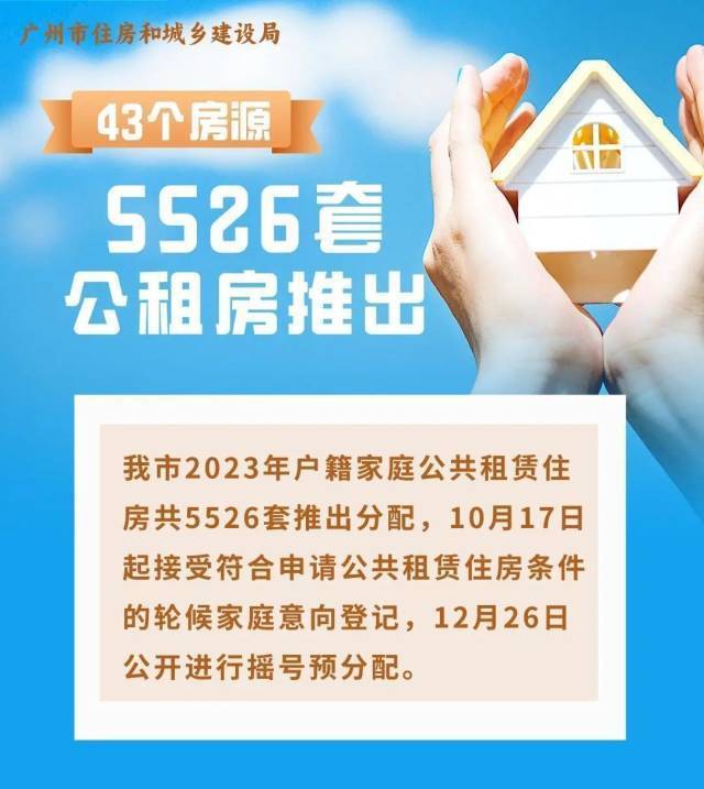 近日,广州市住房和城乡建设局发布消息,将在全市推出5526套户籍家庭公共租赁住房分配,自本月17日起接受符合申请公共租赁住房条件的轮候家庭意向登记,12月26日公开进行摇号预分配。