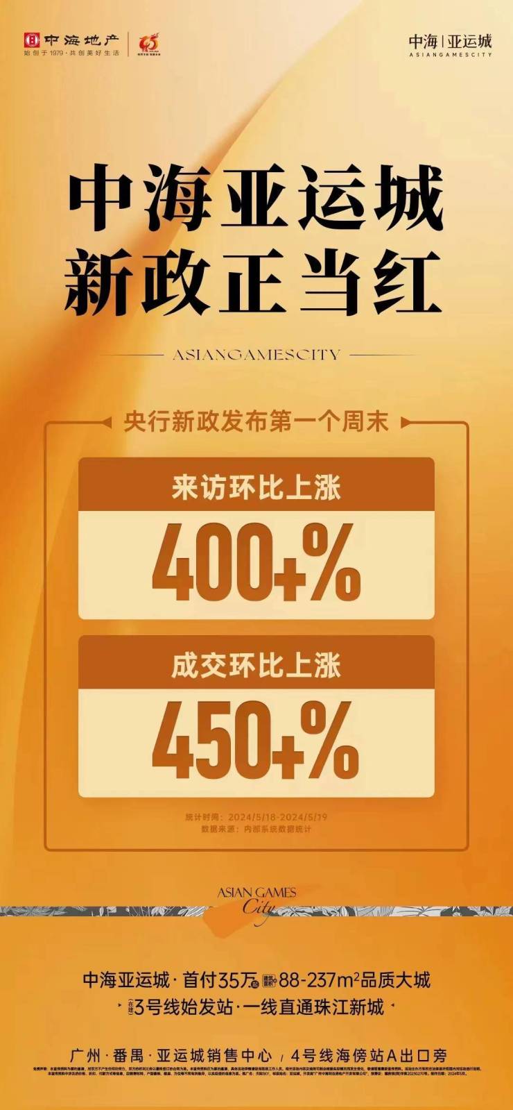 同在番禺区的中海亚运城人气也很高。新政后首个周末(5月18-19日),项目来访量环比上涨400+%,成交量环比上涨450+%。项目现主推建面约88-237㎡产品,首付款仅需35万元起。