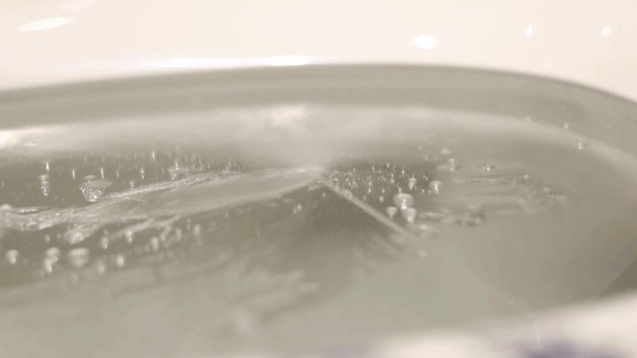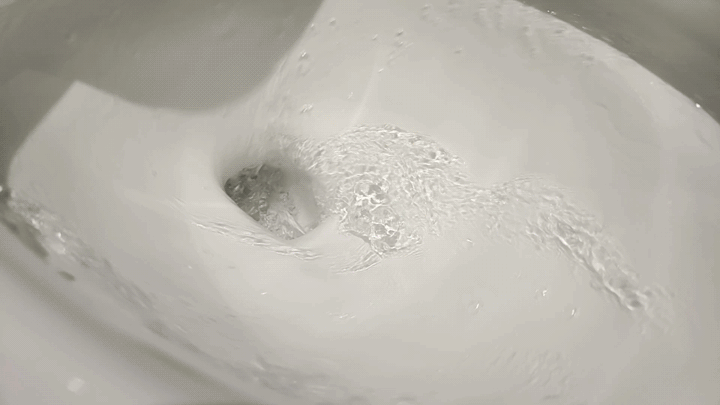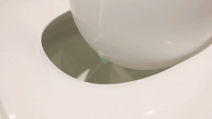 我们借助蓝墨水来测试R11的防回流性能,在坐便器内壁画上一圈蓝墨水,即刻开启冲水。可以看到,一次冲水之后,R11并无蓝色残余或返流,一次即冲净,防回流测试轻松过关。