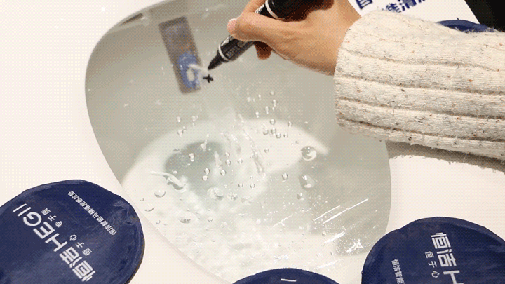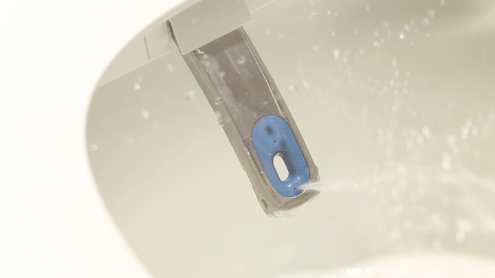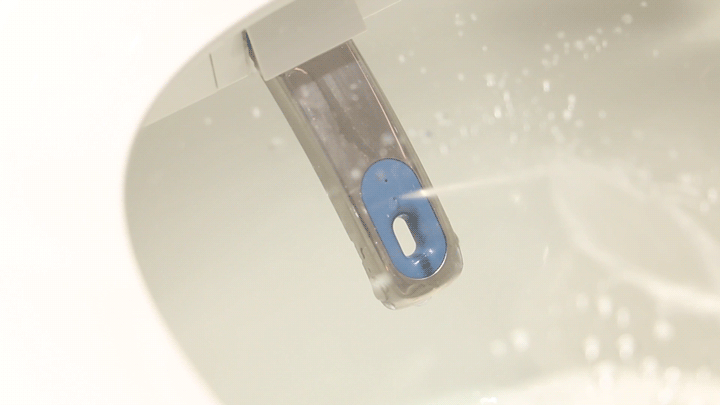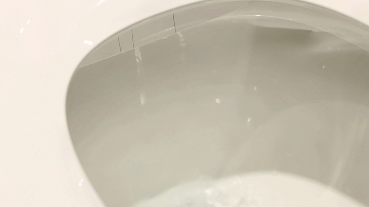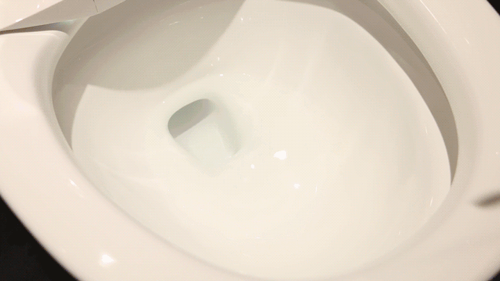 除了固体排污能力,一款优秀的智能马桶,还要能够冲走容易黏附在内壁上的污渍,因而内壁洗净能力也很重要。