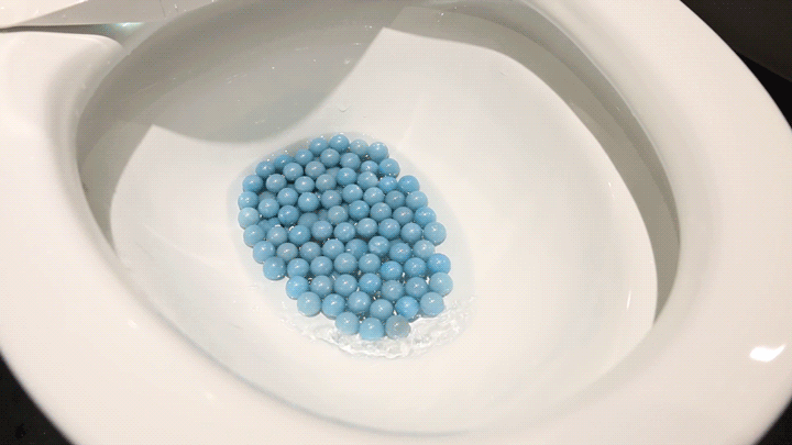按照国家标准,智能马桶在标准运行模式下清洁率不应低于90%,清洁率≥98%为A等级清洁能力。为了模拟大小不均一的固体排冲,我们决定用PP球来测试R11的排污能力。