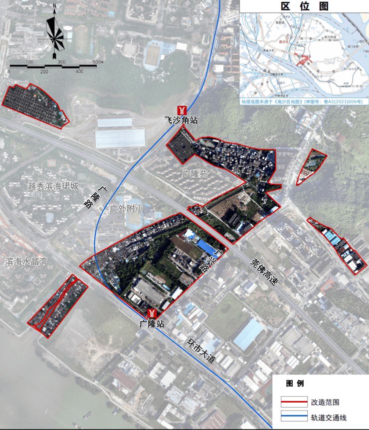 本月初,南沙规划自然资源局发布了包括大涌村、广隆村在内的五个旧改项目的改造方案公示。