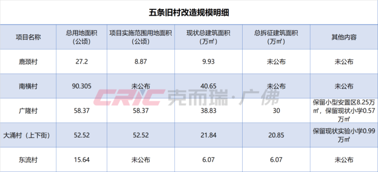 在改造规模上,范围最大的是南横村,共计90.305公顷,现状总建筑面积40.65万㎡。