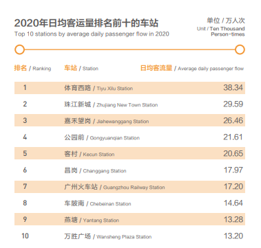 2020年,广州地铁日均客流量为 659.16万人次,较高日客运量为1139.9万人次。