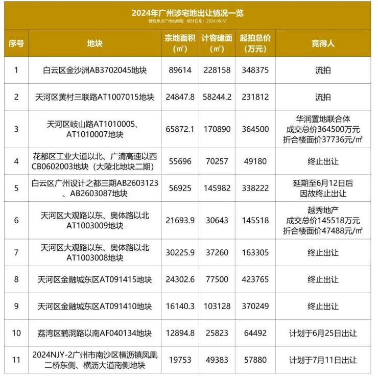 广州的土地出让成绩还真不算好。已挂牌出让的11宗涉宅地中,2宗地分别为华润联合体、越秀地产拿下;7宗地要么流拍,要么终止出让;2宗地预计于6月25日、7月11日竞价出让。