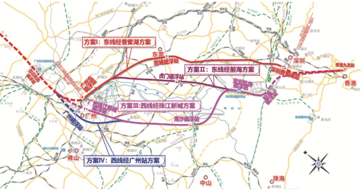 广深港高速磁悬浮线站位方案示意图