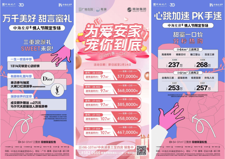除了以上几个项目之外,临近情人节,各大楼盘也纷纷放出优惠活动,提前“收割”小情侣。