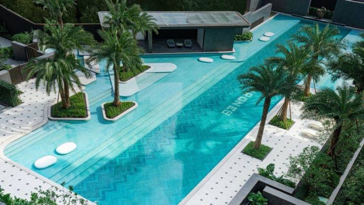华南首座800方私家蓝宝石泳池,广州首个50米国际赛道级标准泳道,宛若碧玉般清澈的泳池,如蓝宝石般绚丽耀眼。再加上酒店级按摩池、热带棕榈树、特选造型名木掩映,一派浓郁的热带度假风情,不由得让人感叹广州的“马尔代夫”原来就藏在御湖境里。