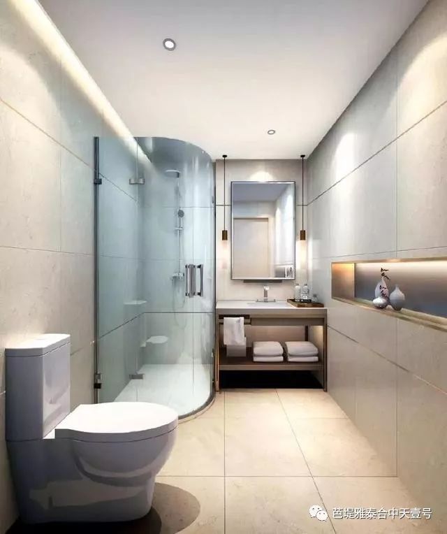 开放式单位設有直立式淋浴間、二房單位之主人房設有浴缸、高级仿石或大理石洗手面盆、浴室洁具以“COTTO”或同級標準品牌、欧洲品牌水龙头及洁具配件