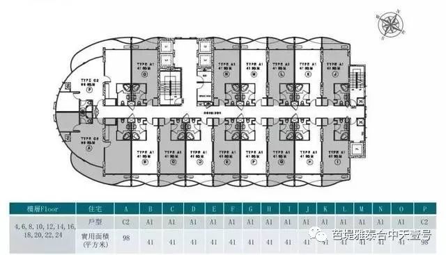 (1,2层为停车场及商铺、3-25层住宅区、3,26层公共区域、4部客梯)