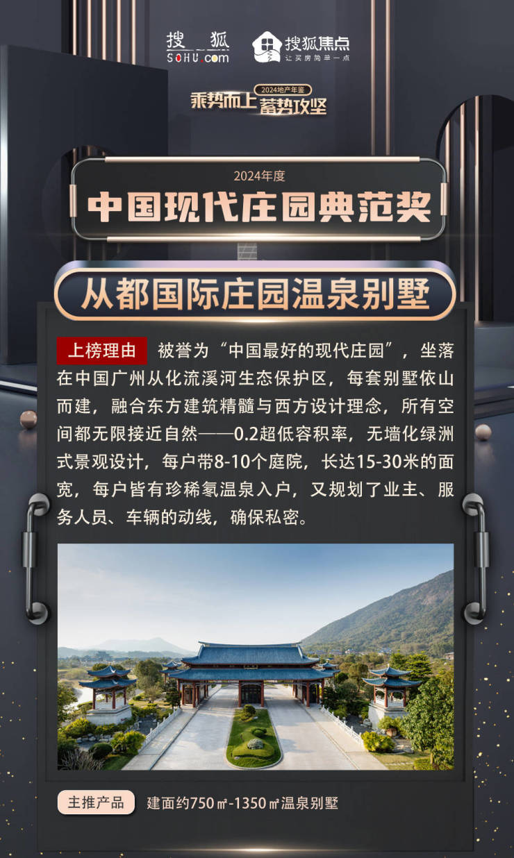其中,从都国际庄园温泉别墅荣获“2024年度中国现代庄园典范”奖项 。