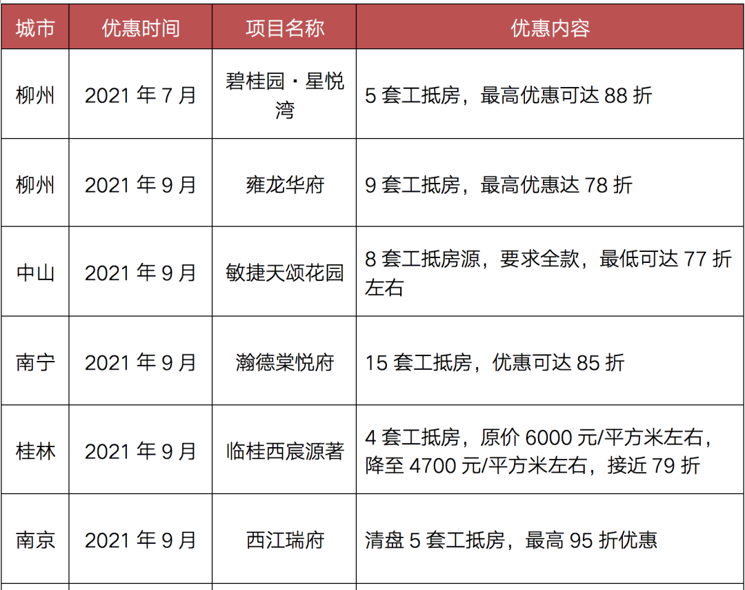 在这样的背景下,部分房企不得已打出“工抵房”的名义实施降价销售。这种形式的价格调整也能平衡老业主的情绪,避免出现维权问题。