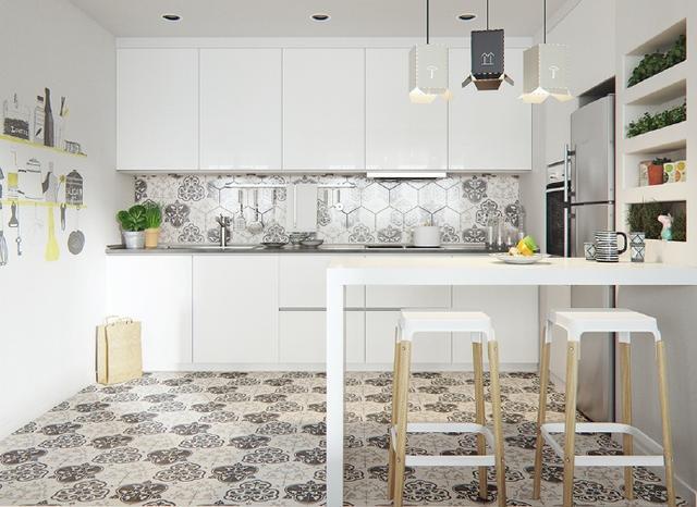 厨房地面可以选择耐脏的小花砖