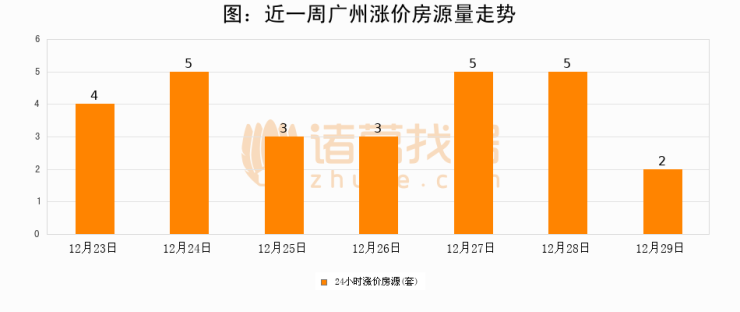 根据诸葛找房数据显示,广州24小时涨价房源量为2套,较12月28日减少3套,环比下降60%。与此同时,涨价房源占比小幅回落,对于购房者来说是一个入市窗口期,购房者可抓住时机入市。