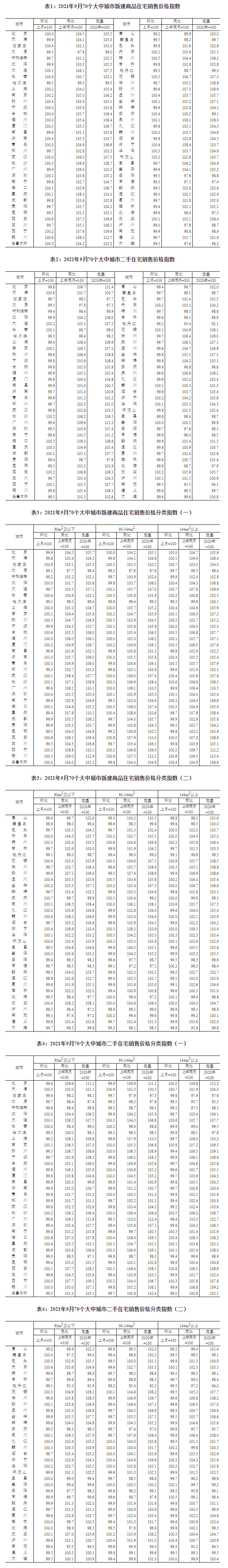 2021年9月份,70个大中城市商品住宅销售价格环比总体呈略降态势,同比涨幅持续回落。