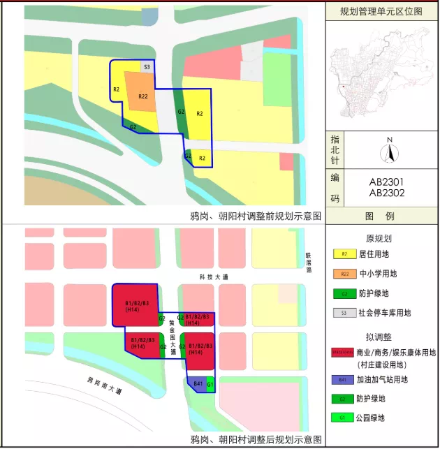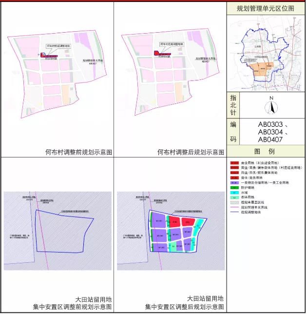 调整后地块主要为商业/商务/娱乐康体用地(村庄建设用地)、加油加气站用地、防护绿地、公园绿地。