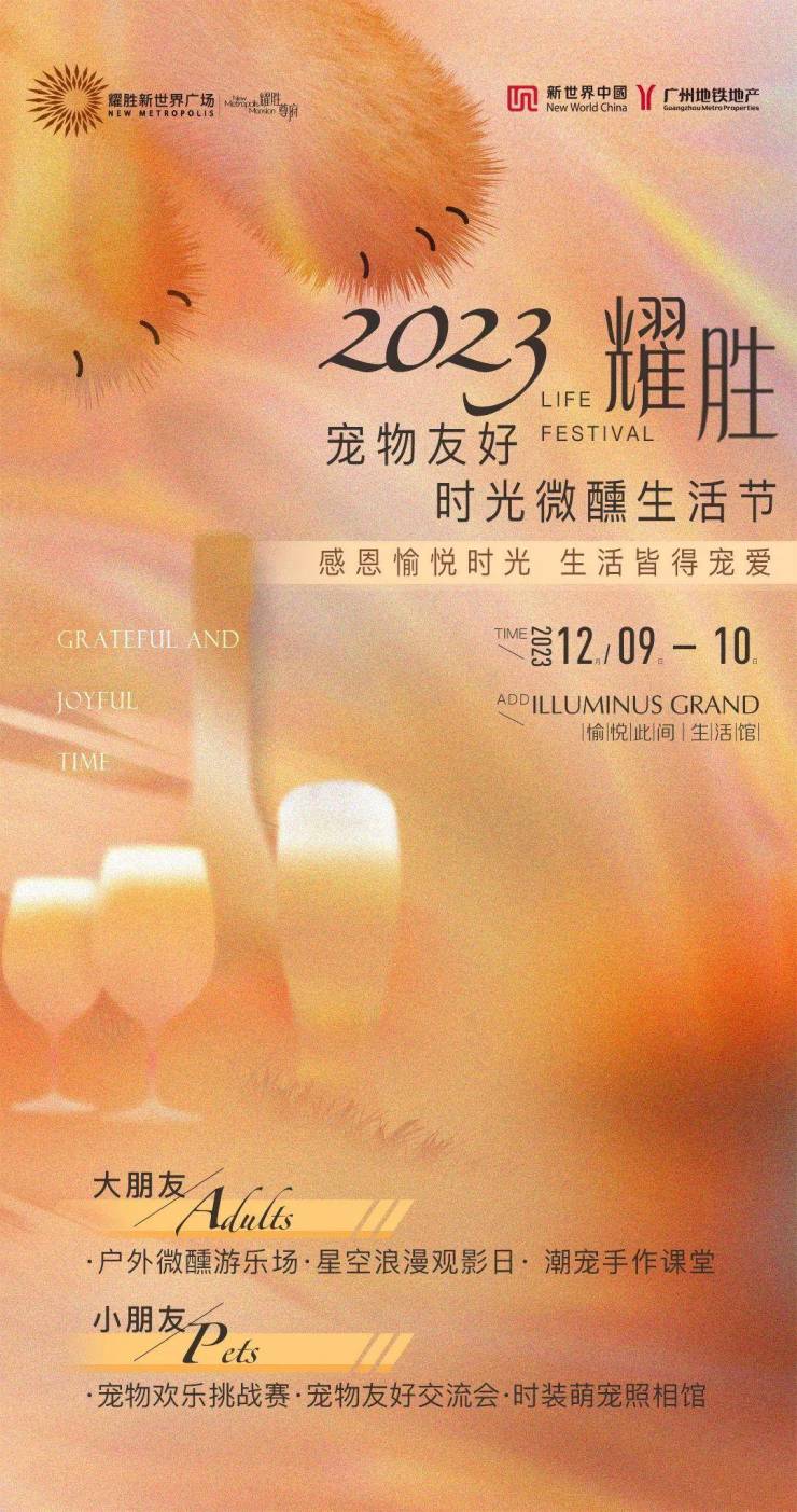 暨全业态封顶感恩月,本周末12月9日年度新品盛典愉悦开幕,联合宠物友好时光微醺生活节,感恩敬献业主及粉丝(活动预约、了解规则及详情,请咨询现场热线:020-3931 3888)
