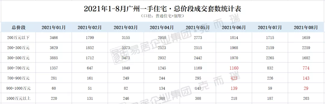 另外,作为顶流总价段之一的900-1000万元,在8月份仅网签成交29套一手住宅,较6月份的139套,直接下降了百来套。一对比,吓一跳!