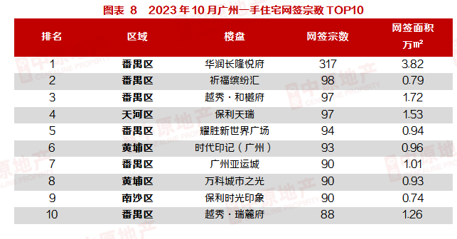 颗粒度细化到具体项目,可以看到,10月广州成交TOP10榜中,番禺一区便独占6席!