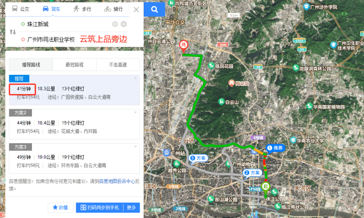 云筑上品具体位于白云区鹤龙一路,从珠江新城自驾过去约40分钟。