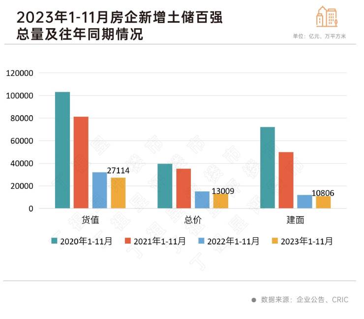 1-11月,房企新增货值、总价和建面百强的总额分别为27114亿元、13009亿元和10806万平方米。