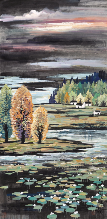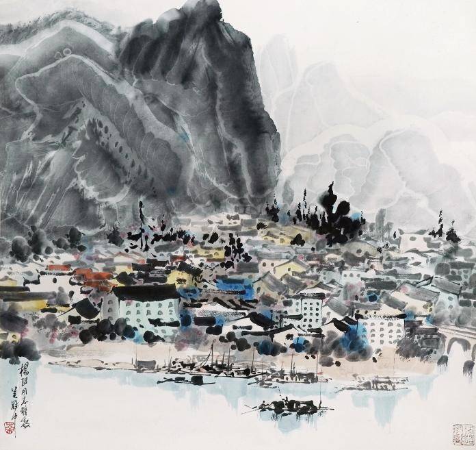 提到山水画,不得不说吴冠中。他是20世纪中国美术史上最具风格魅力、富有创新精神的艺术家之一。吴冠中早年以油画为主,致力于油画民族化的探索。1975年以后转向水墨画创作,在中国绘画史上,开辟了一条跨越传统程式、融汇中西艺术的道路,将中国绘画的精神与风貌推向了世界。本次琶洲·樾选取了吴冠中的得意之作《水乡》,如初春的新绿、薄薄的雾霭、水边村舍、粉墙黛瓦,让作品充满了生命力和活力。