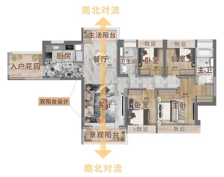 该户型也是「新世界·天馥SILLAGE」“风光同权”理念的集大成者。所有的房间都会有观景飘窗,每位家人的生活都被很好的关照。