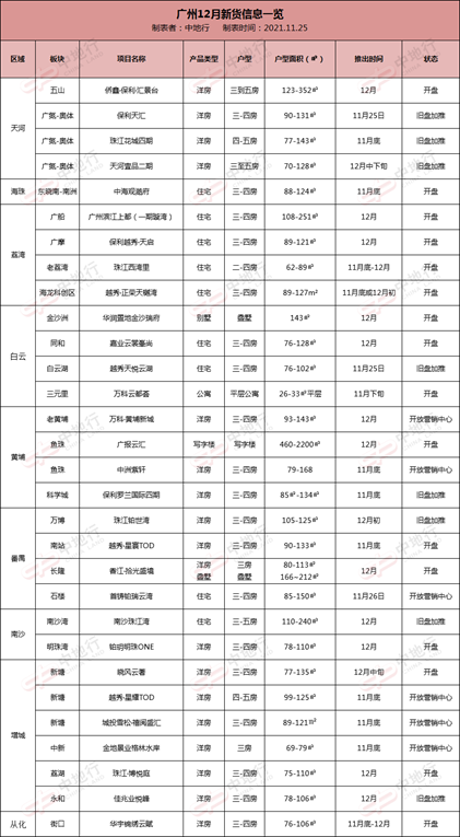 据中地行不完全统计,年底广州全市预计有30个项目有动作,包括16个全新项目开盘,8个项目旧盘加推,6个项目开放营销中心。