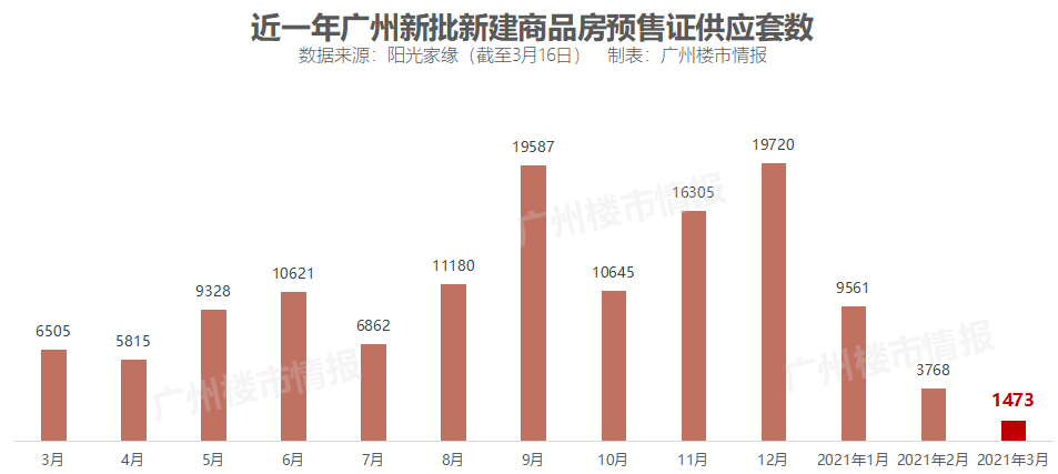 导致市场这样的原因,首先是广州近期严查消费贷、经营贷违规流向楼市,严查购房首付来源,限制了不少购房者的入市。其次,就是广州市场确实无货可卖。在2月9日至3月5日,几乎整个月广州都没有放出预售证。