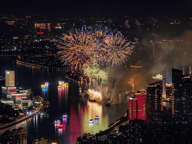 2025年大年初一,广州白鹅潭迎来了一场视觉与听觉的双重盛宴:夜幕降临,153800发烟花划破长空,以650米的视野跨度,在白鹅潭上空绽放出一幅幅壮丽的光影画卷。全城目光,皆聚集于此。