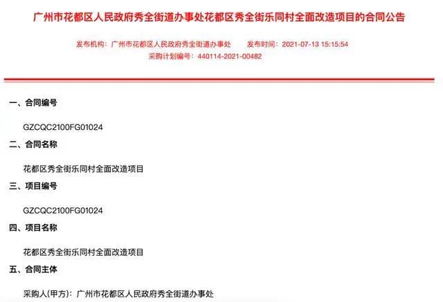 近日,花都旧村改造再度传来好消息,广州花都区秀全街道办事处发布了花都区秀全街乐同村全面改造项目的合同公告,乐同村即将正式启动全面改造!