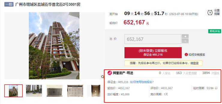 简单来说,实地蔷薇国际一套建面约94㎡的房子挂上了法拍网,起拍价约65.2万,折合为单价约6937.9元/㎡。