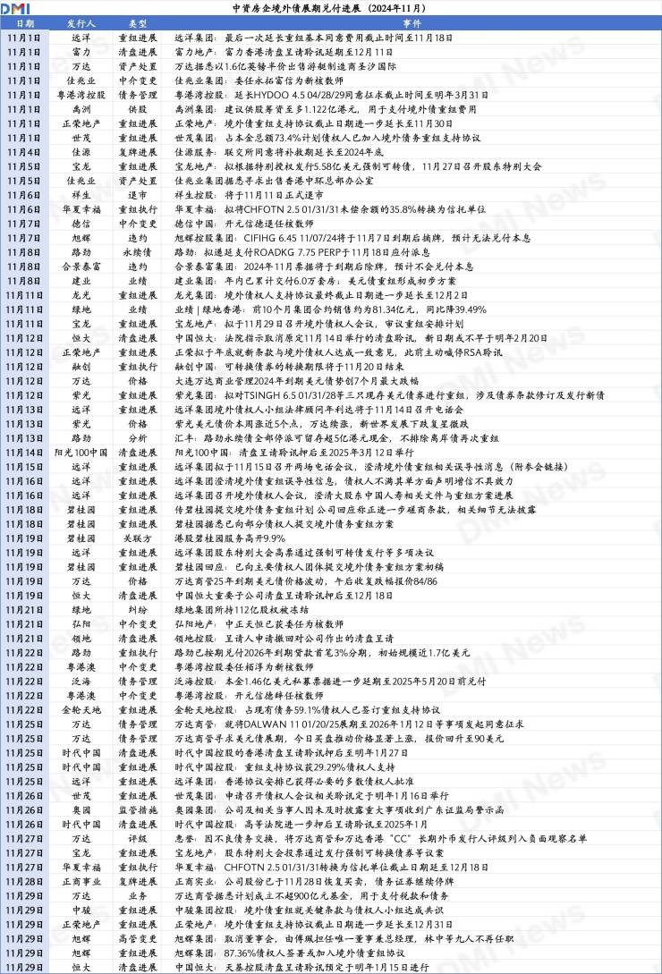 11月25日,万达地产环球寻求2025年到期的4亿美元展期,将债券到期日从原定的2025年1月20日延长至2026年1月12日,并增加一项规定,即在2025年1月20日强制赎回当时未偿还债券本金总额的25%。
