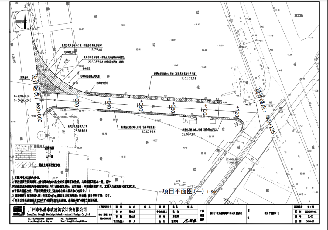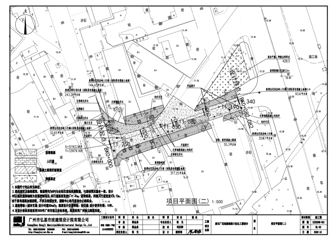 新旧广花连接线路口优化工程设计,位于广州市白云区江高镇,项目包含两段道路,总长约 217.082 米。