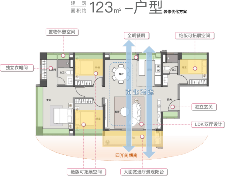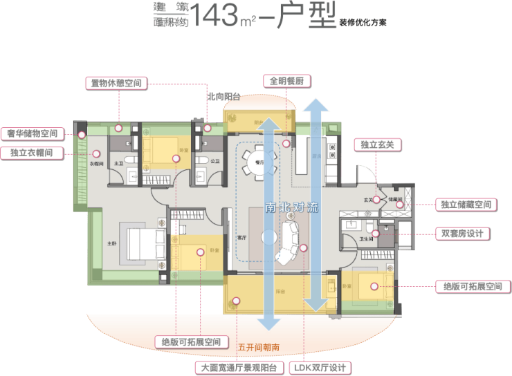 秉持这样的理念,国贸云上使用了全新的户型设计。通过近乎苛刻的精细化设计,我们将公摊面积压缩到极致,以获得更多的户内空间,由此我们实现了跨级体验的自由巨厅、全系产品LDK一体化的设计、可分可合的餐厨空间、多功能的主卧和全尺寸的次卧,以及满足不同家庭结构的X空间。通过率先执行白云半开敞空间面积上限比例加大,实现全线户型实用超100%。