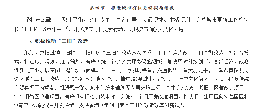 在“十四五”规划的加码下,增城旧改也能进一步加速。