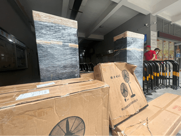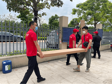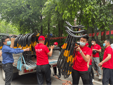 为确保捐赠物资及时送达一线防疫人员手中,金地广州东相关负责人员在捐赠当日紧急调动运力,一众志愿者团结一心,更好的推进防疫工作的开展,让一线防疫工作者在高温下尽快用上消暑用品,志愿者全部上阵,高效将物资卸下,搬运进库。