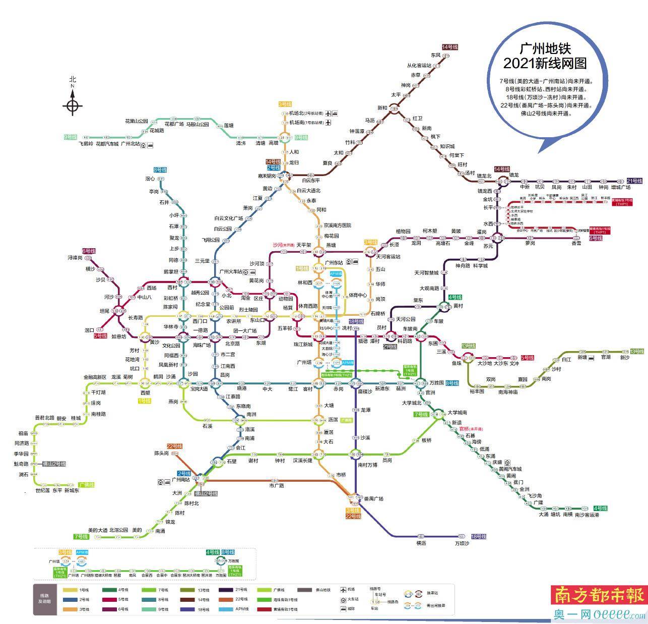 广州地铁线网图更新,增设三条线路站点信息