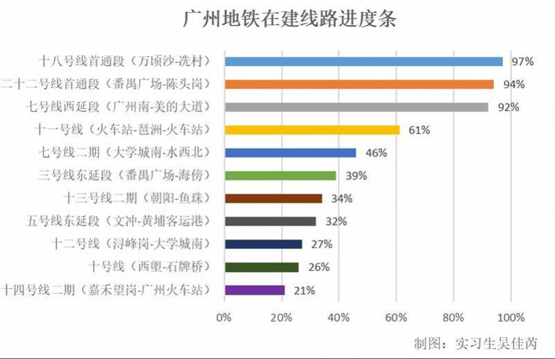 广州地铁在建线路进度条。