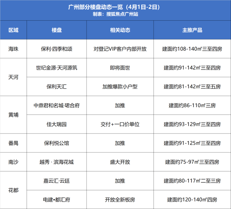 在搜狐焦点不完全统计的9盘中,距离广州塔约2公里的保利·四季和颂——从4月1日起对VIP客户内部开放、被学府包围的世纪金源·天河源筑推出认筹优惠政策,即将对外面世、南沙一线景观盘越秀 · 滨海花城——将于明日(4月1日)盛大开放以及科学城区府板块性价比盘佳大瑞园完美收楼......看点十足,一起来看!
