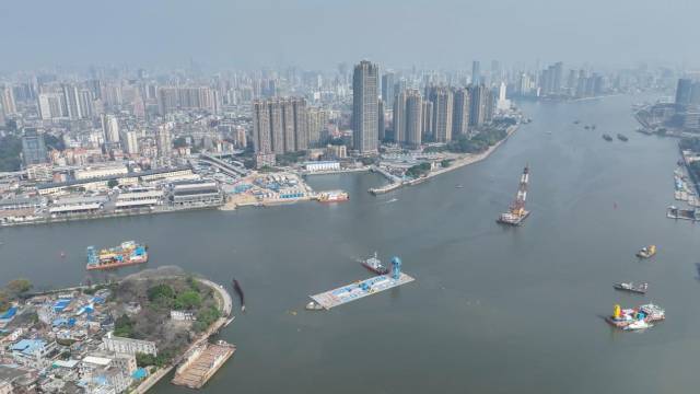 其江中段位于白沙河航道和沙贝海航道下游交汇处。为避免项目施工对船舶通航造成影响,施工期间项目建设团队与海事、港务等部门紧密协作,多次对航道进行改迁,通过实时警戒、航标调整等措施,保障船舶通行零干扰。