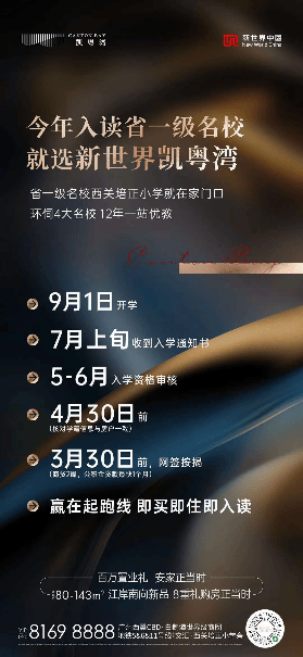 心动不如行动!江岸现楼抢新GO,凯粤湾百万助攻,春季限时礼献8重置业礼,加赠全屋家私家电,建面约80-143㎡南向望江新品点燃“小阳春”置业热潮!抢占利好机遇点,锚定学府红盘新世界凯粤湾,抢住高质量育才高地!